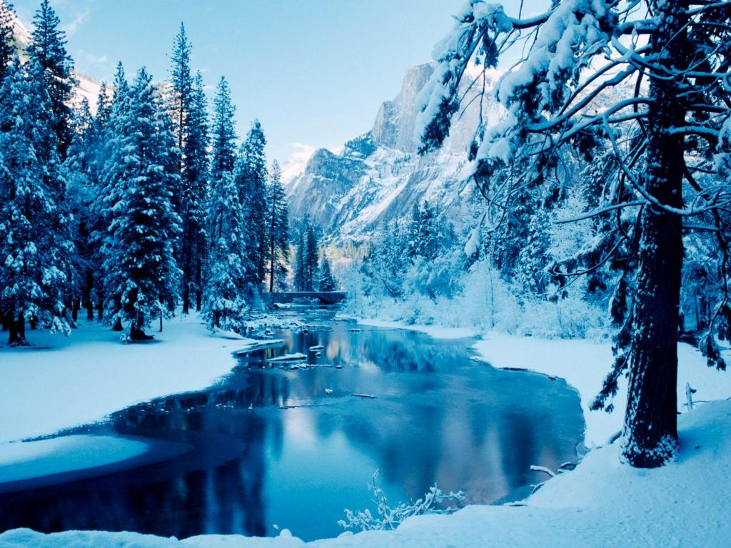 Wallpaper River in the mountains in winter