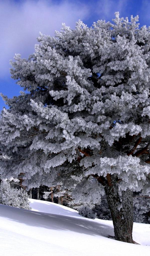 Wallpaper A beautiful frost-covered tree under the blue sky