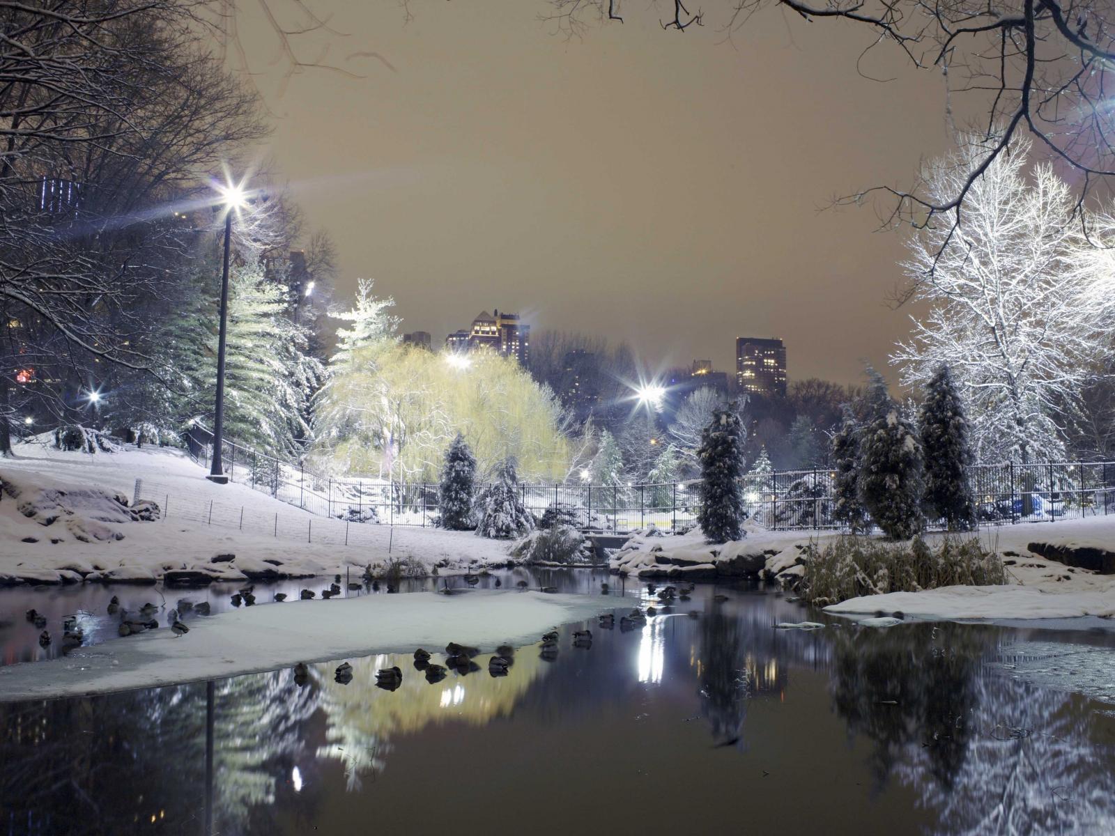 Wallpaper A view of the night skyscrapers of the city of Miami from the city park, Florida. USA