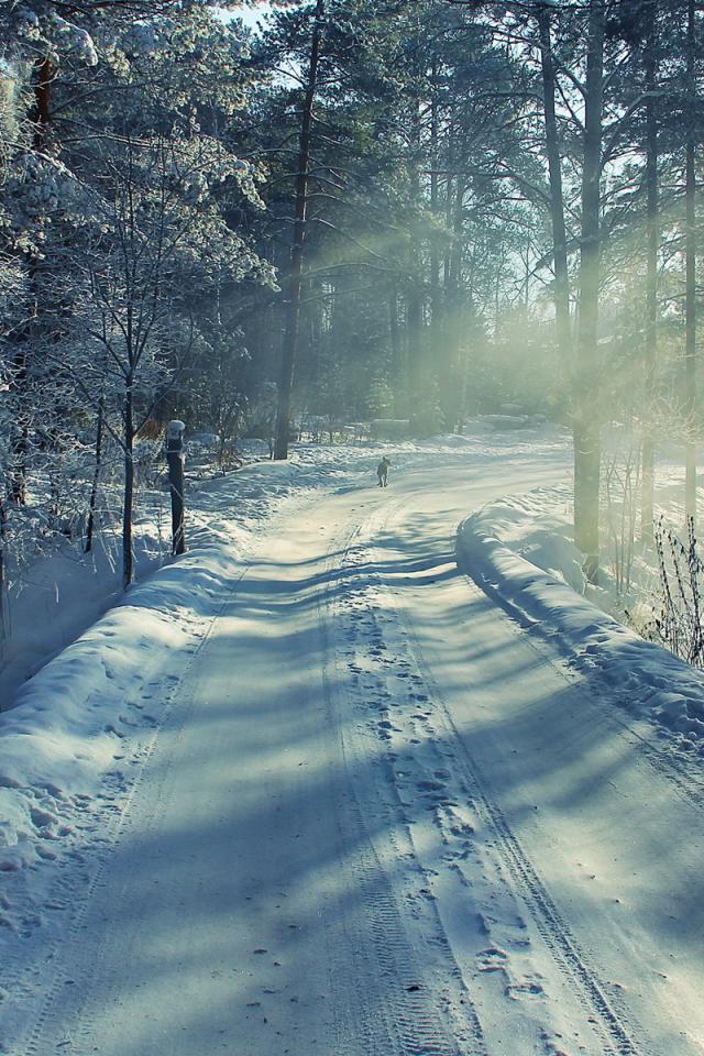 Wallpaper The road in the winter forest