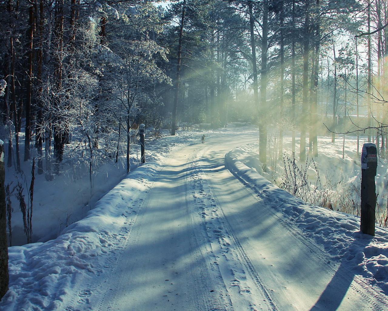 Wallpaper The road in the winter forest