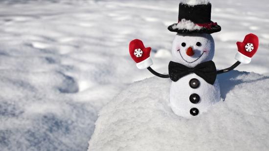 Wallpaper Cheerful snowman in hat on the snow