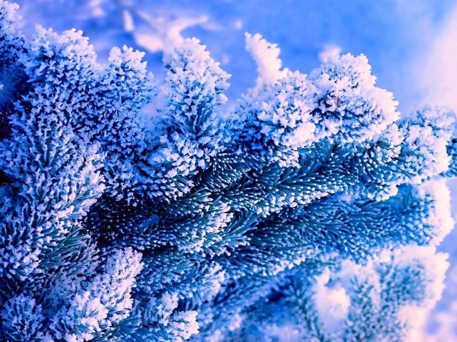 Wallpaper White fluffy frost on spruce branch
