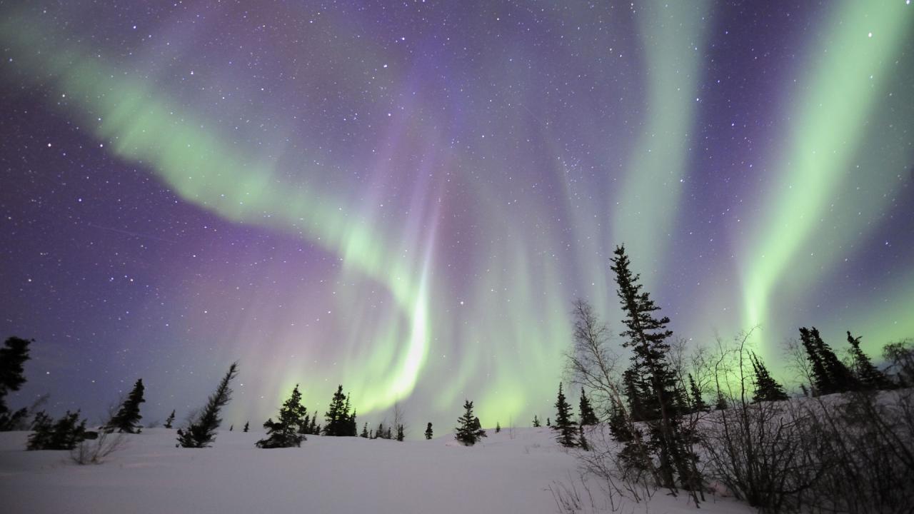 Wallpaper Northern lights over the winter forest