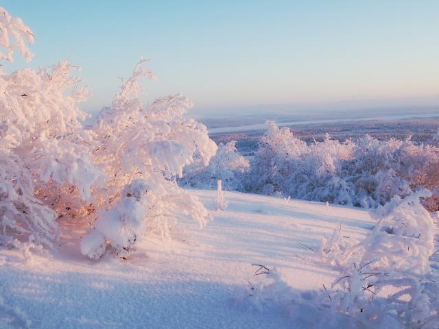 Wallpaper Snow-covered trees in the rays of winter sun