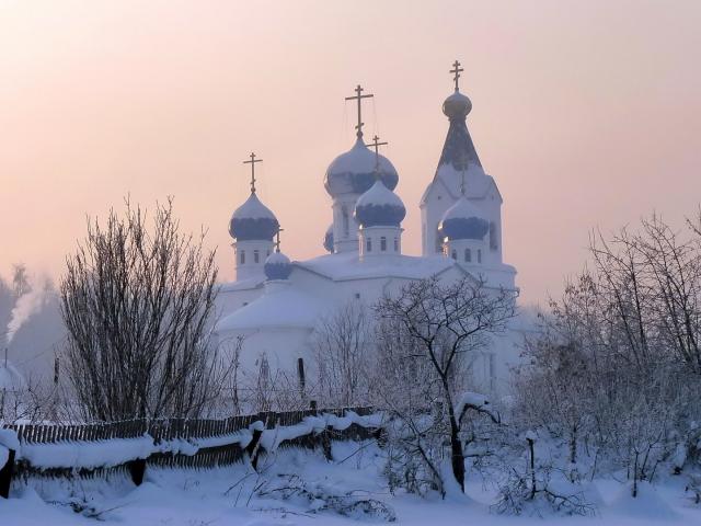 Wallpaper The old temple is covered with white snow