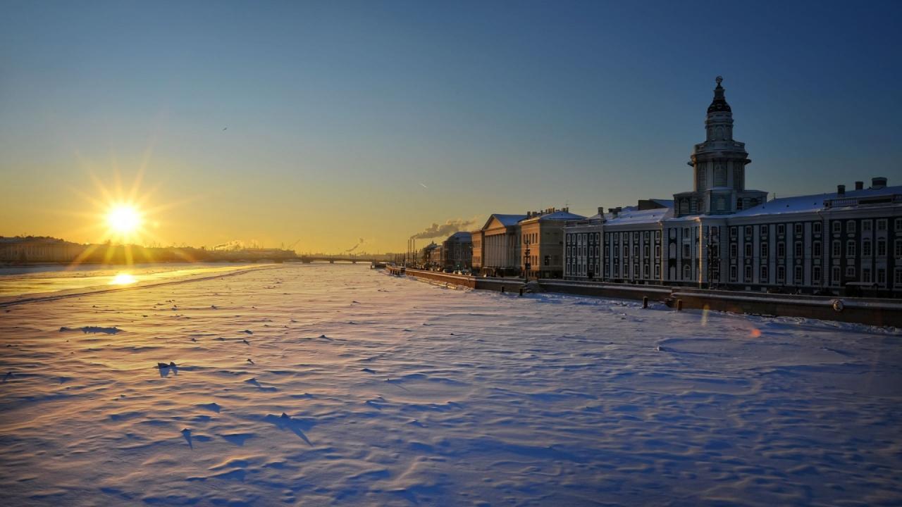 Wallpaper Sunrise winter sun in St. Petersburg