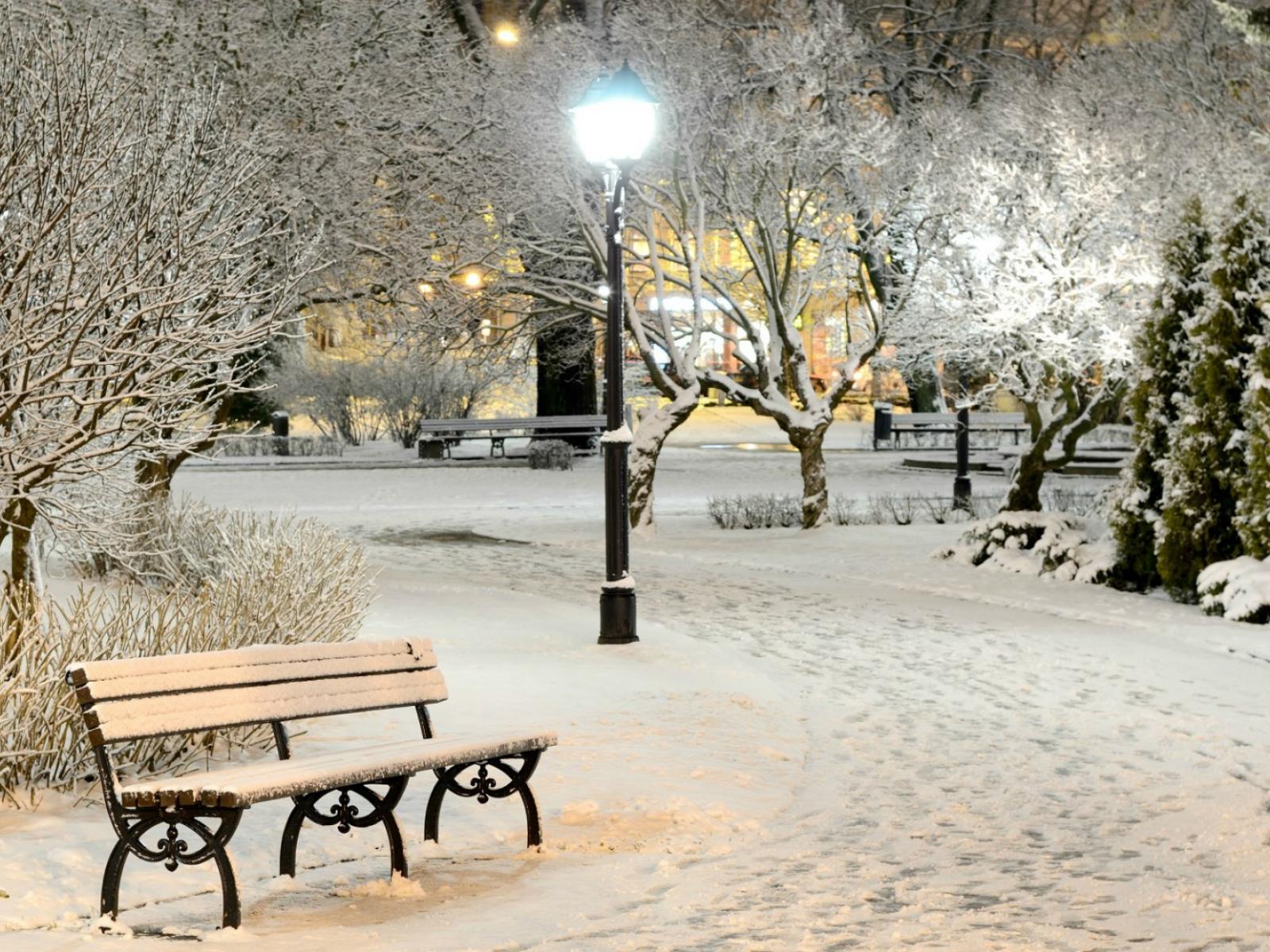 Wallpaper Snow-covered bench in winter park