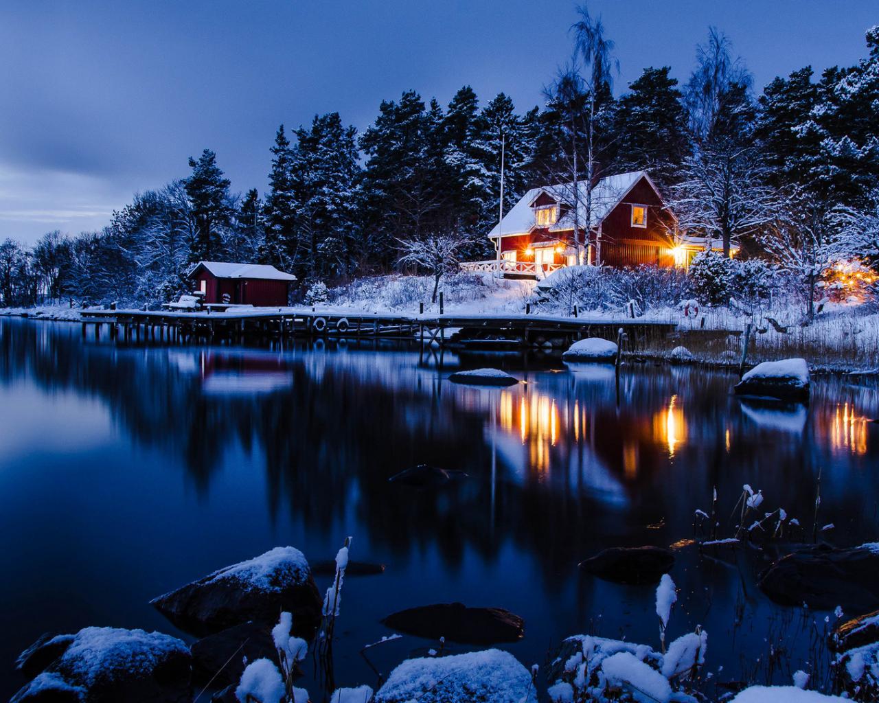 Wallpaper House winter icy lake