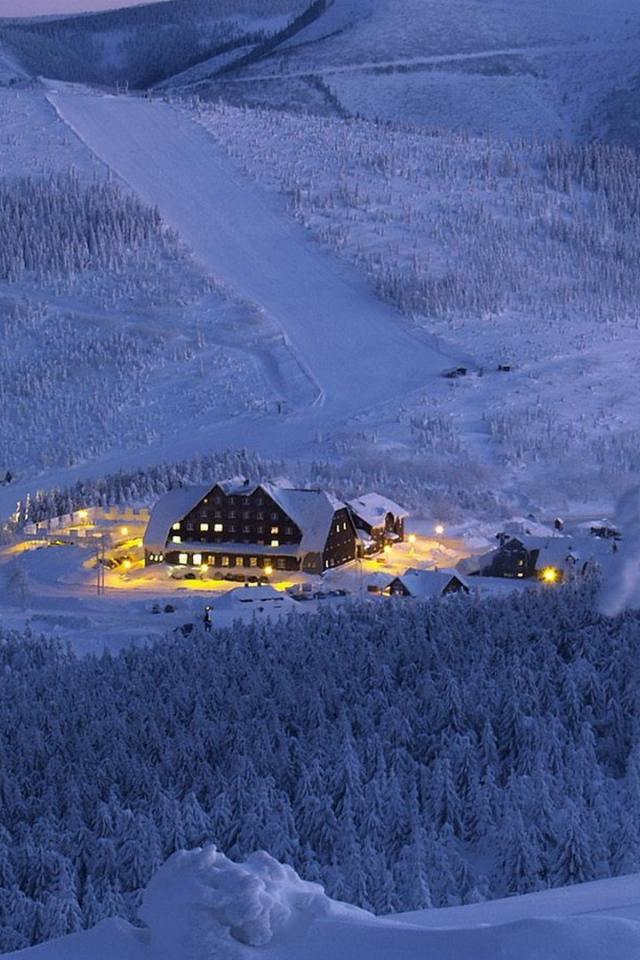 Wallpaper The house is surrounded by snow-covered forest