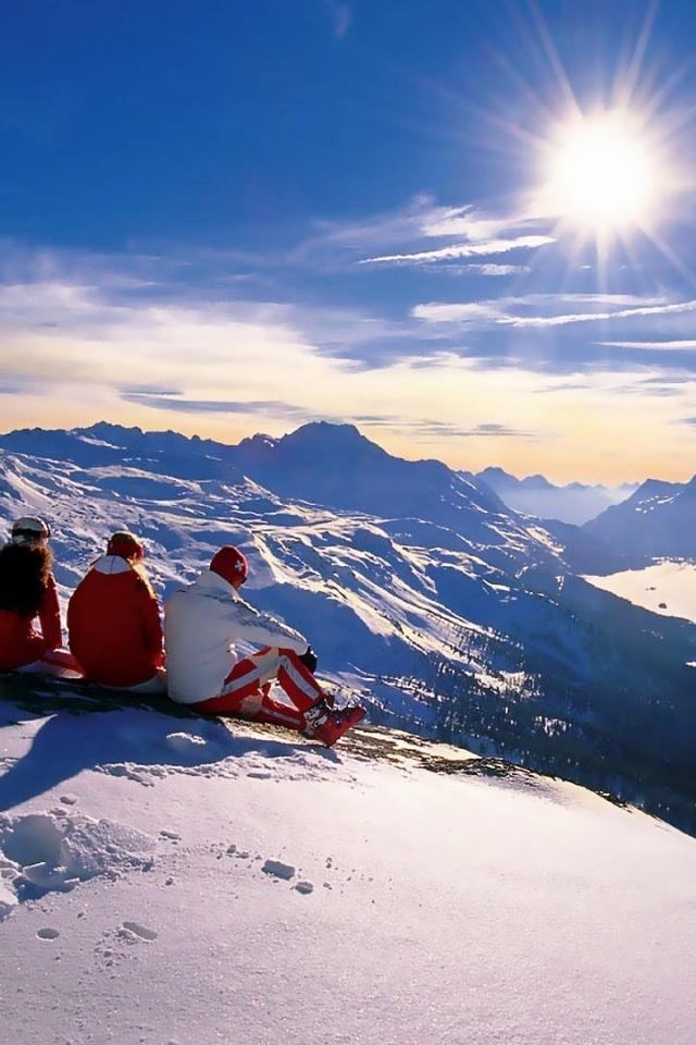 Wallpaper Snowboarders meet the dawn in the snowy mountains
