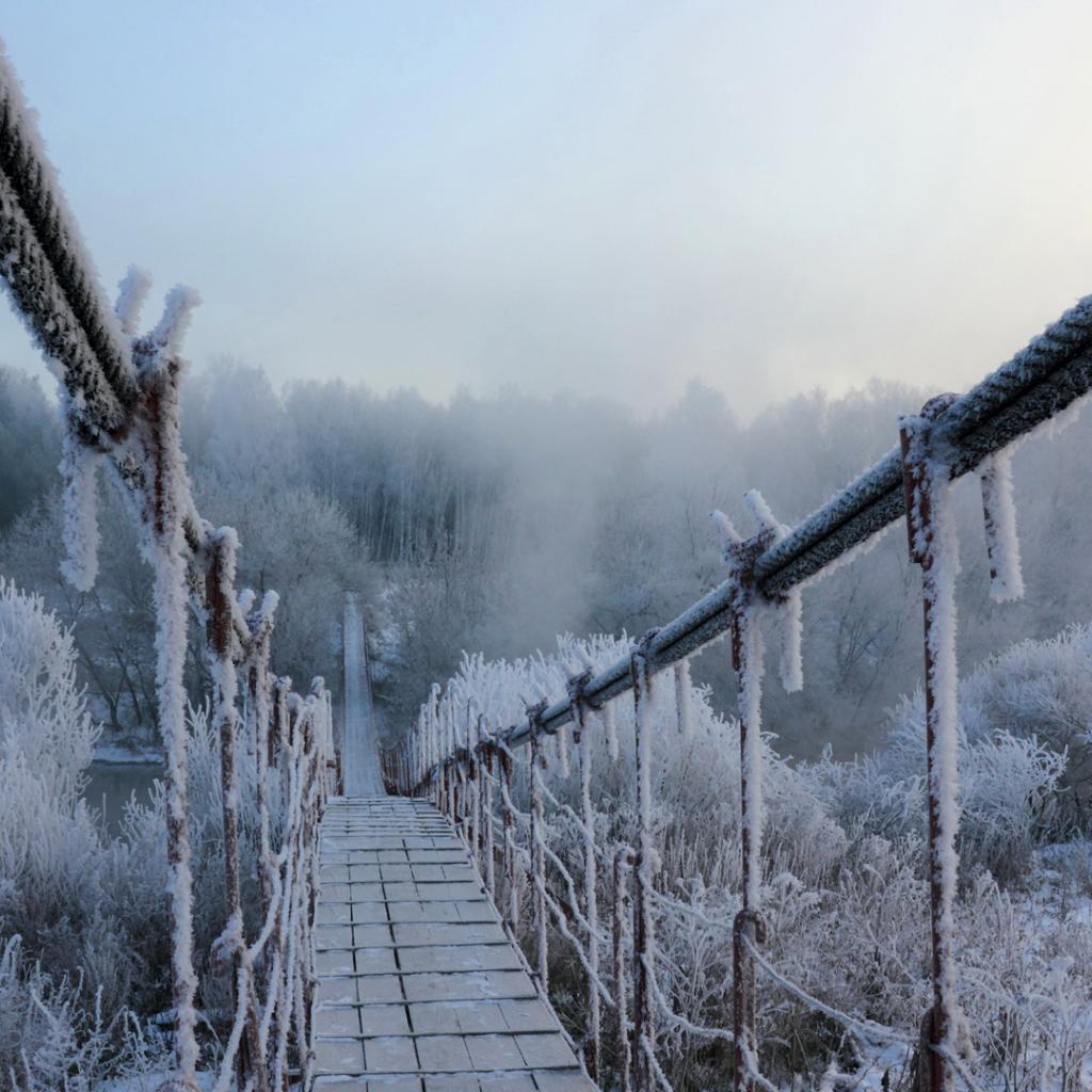 Wallpaper Suspension bridge covered with frost