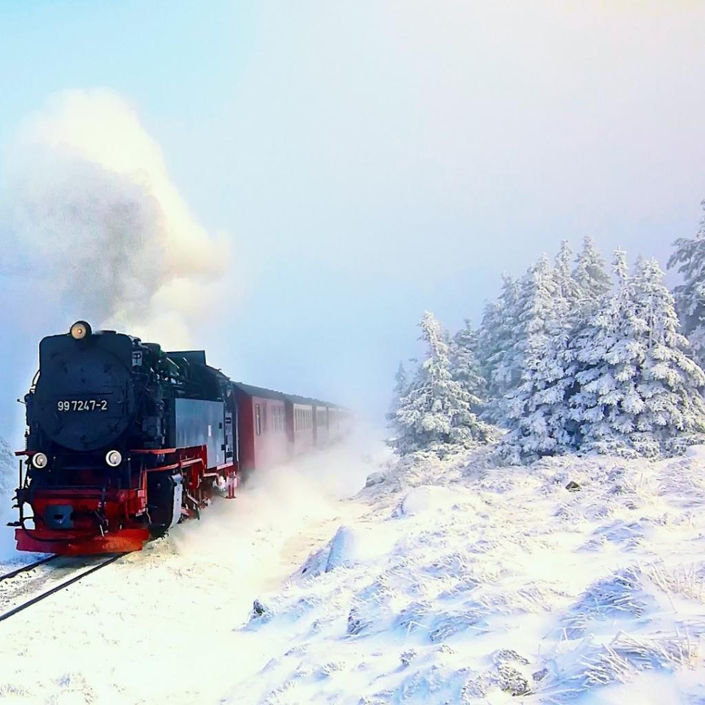 Wallpaper Steam locomotive in snowy woods
