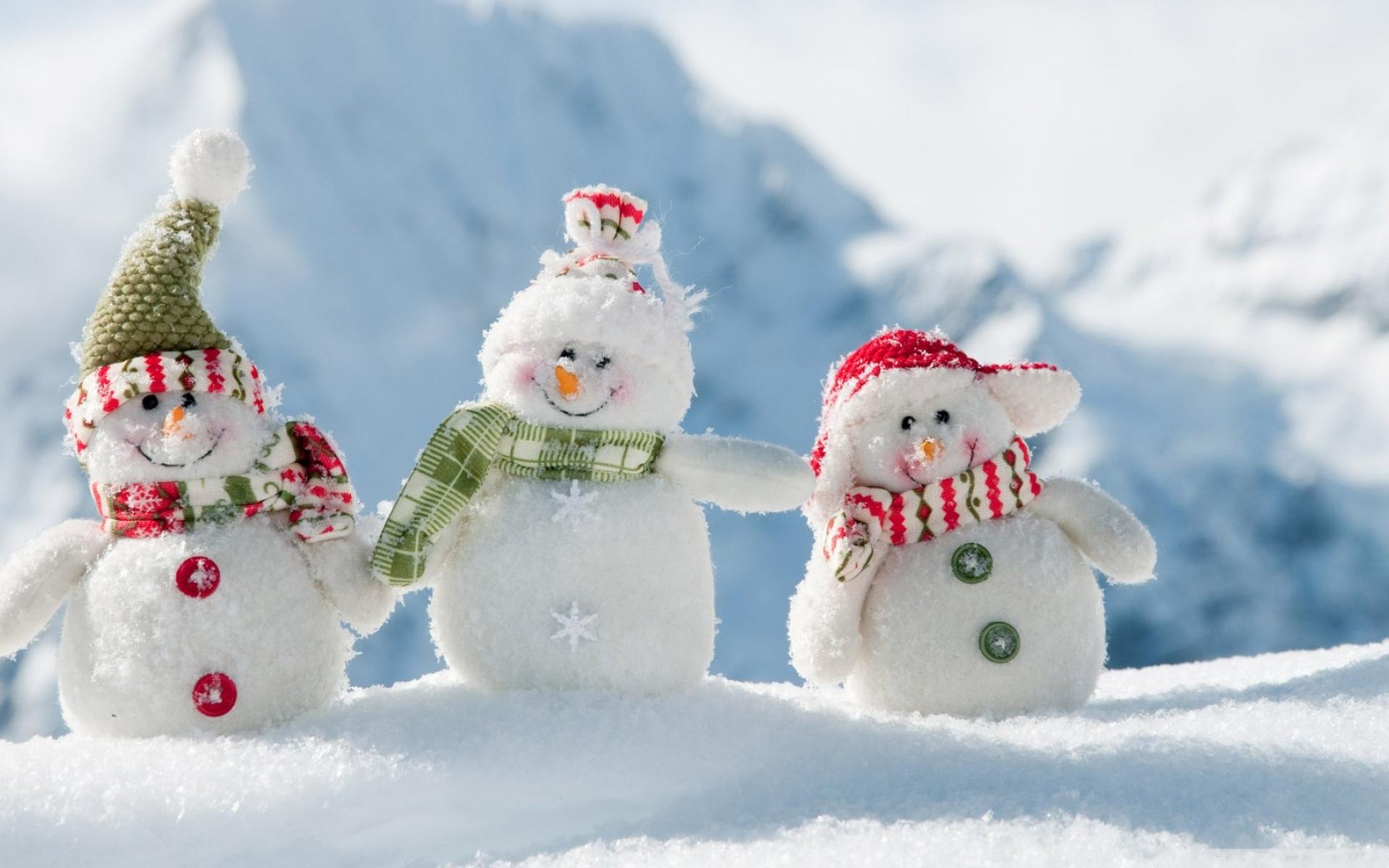 Wallpaper Three cheerful snowman on snow