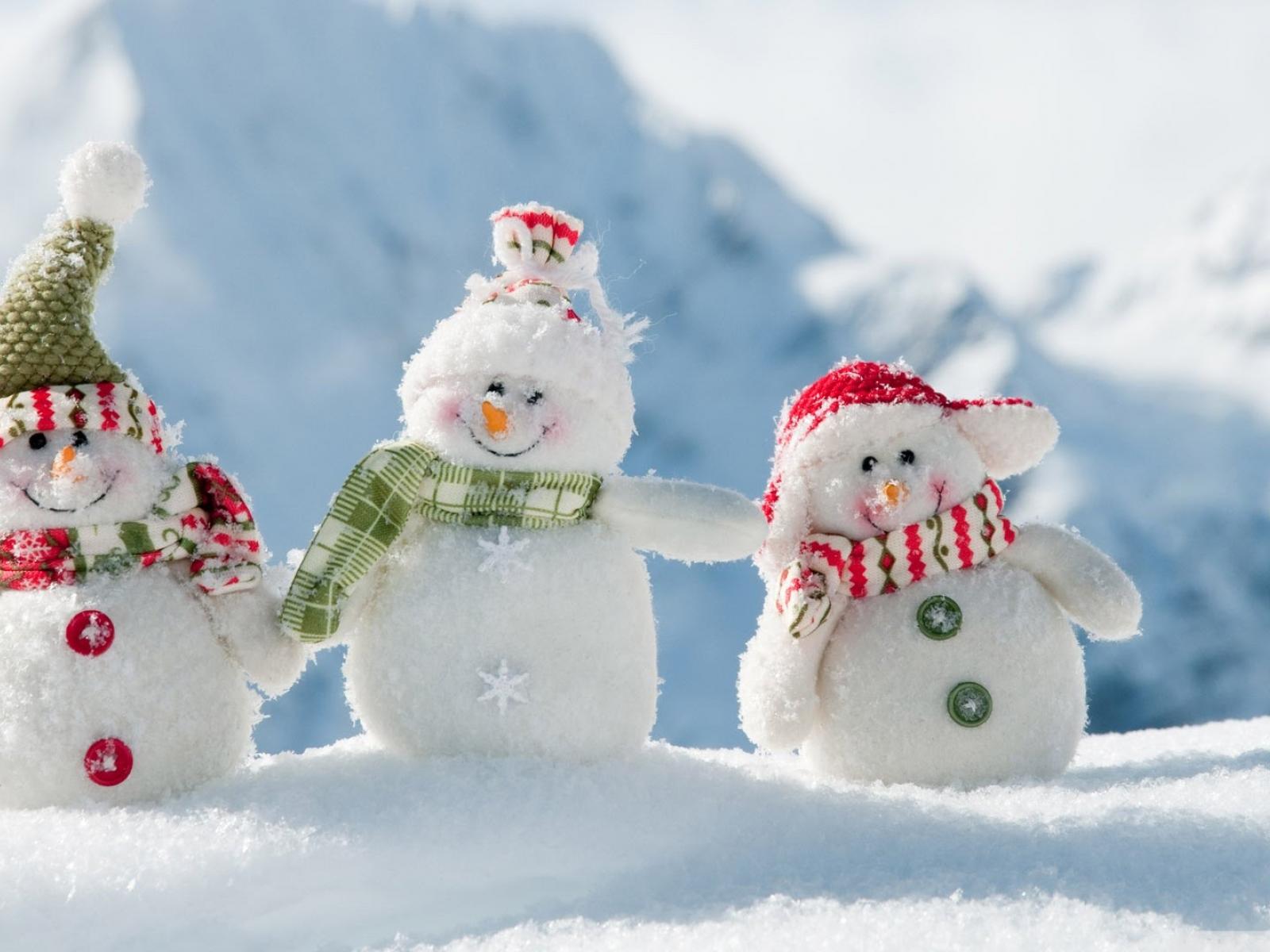 Wallpaper Three cheerful snowman on snow