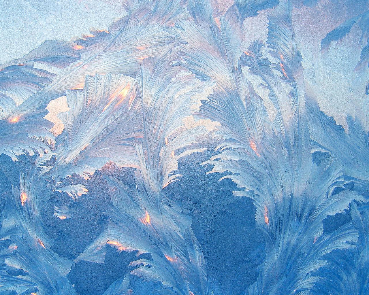 Wallpaper Beautiful blue frosty patterns on the glass