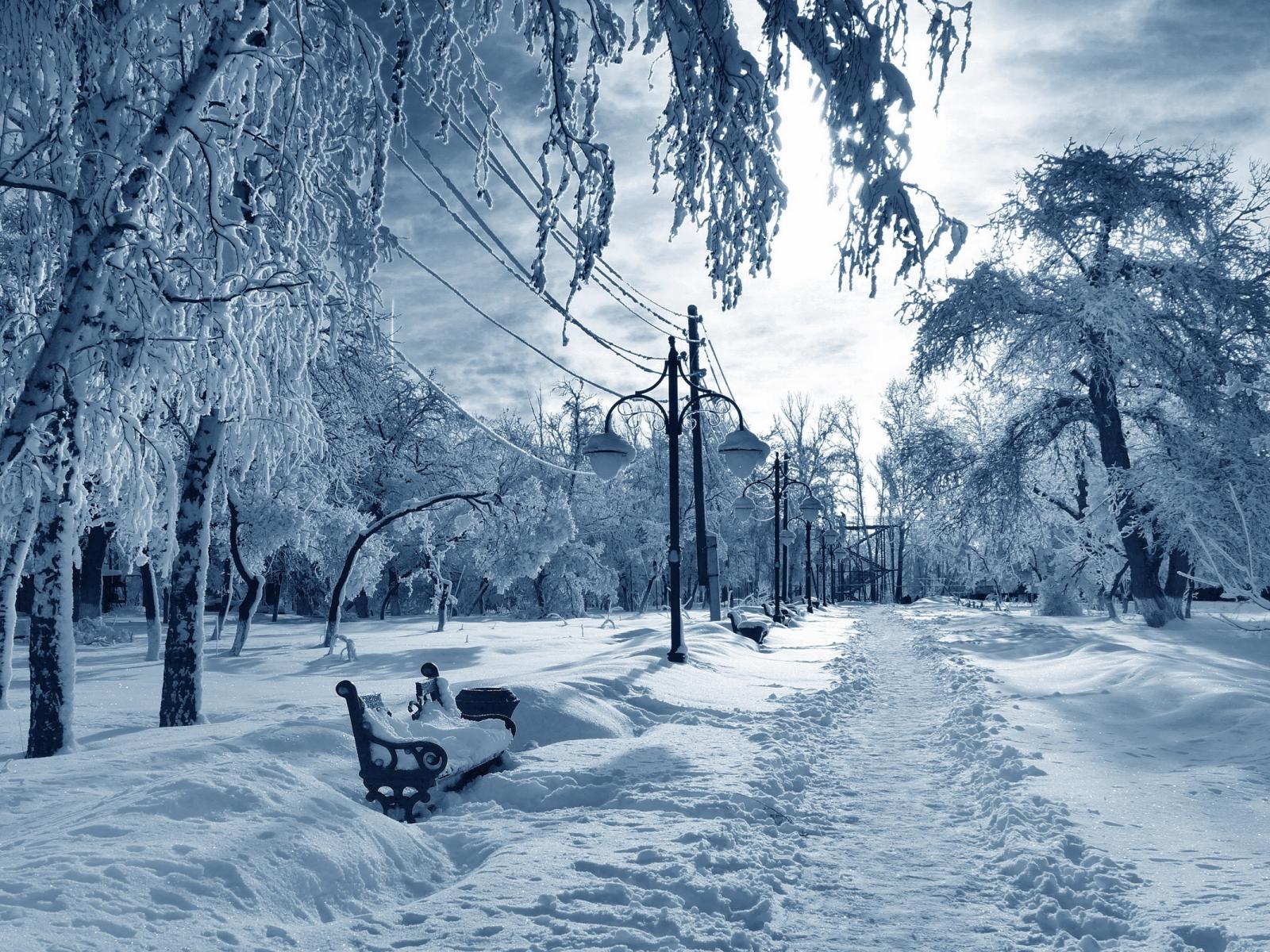 Wallpaper Covered with hoarfrost white birch trees in a cold winter park