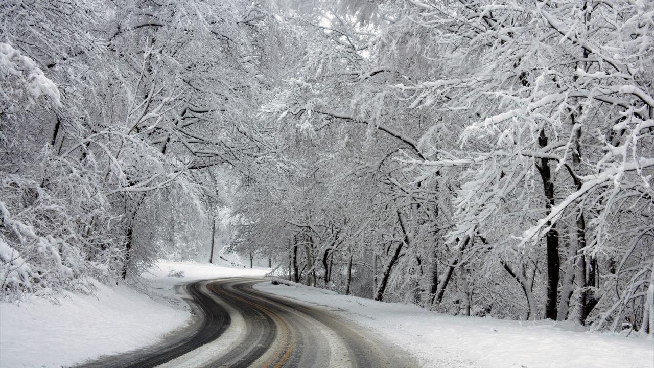 Wallpaper Trees covered with hoarfrost near the winter road