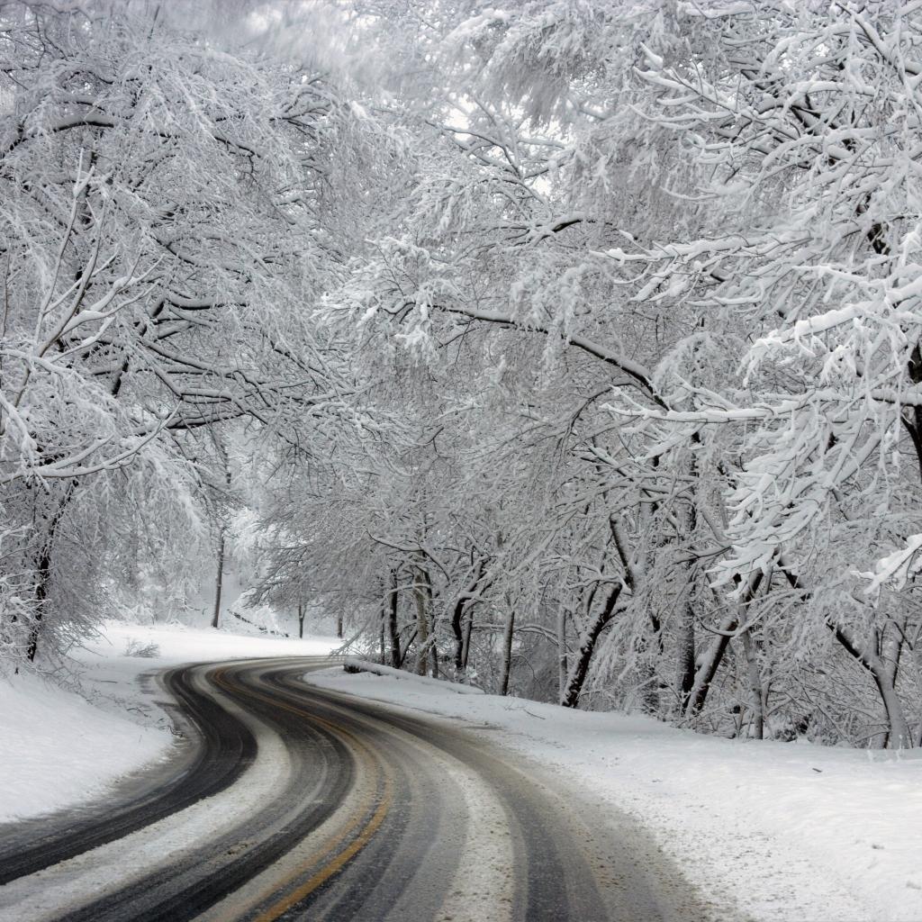 Wallpaper Trees covered with hoarfrost near the winter road