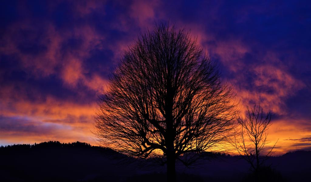Wallpaper Silhouette of a tree against a beautiful sky at sunset in winter