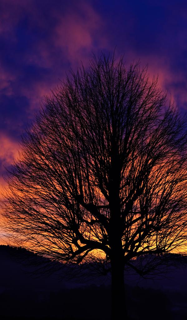 Wallpaper Silhouette of a tree against a beautiful sky at sunset in winter