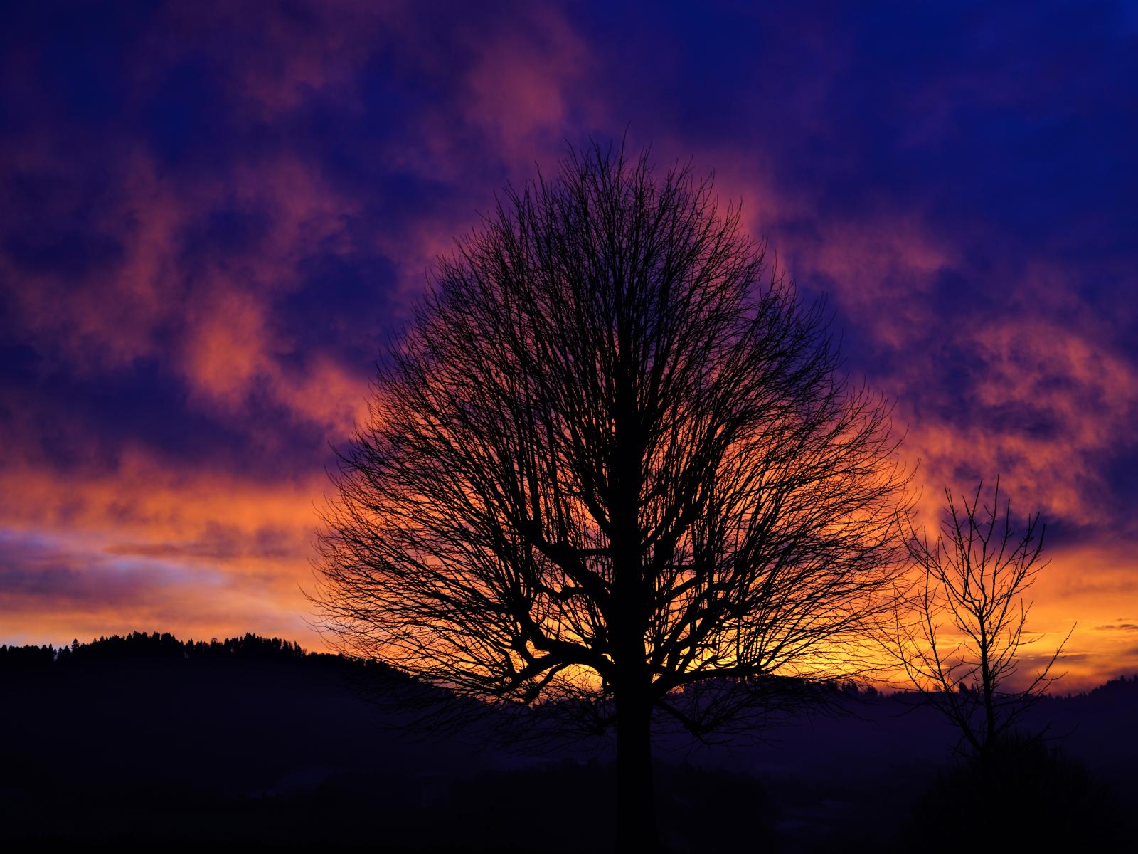 Wallpaper Silhouette of a tree against a beautiful sky at sunset in winter