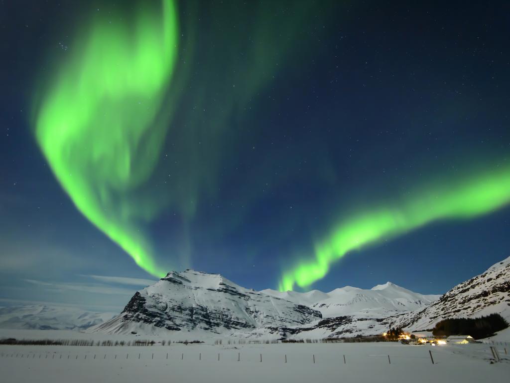 Wallpaper Polar lights in the sky above the snow-capped mountains, Iceland