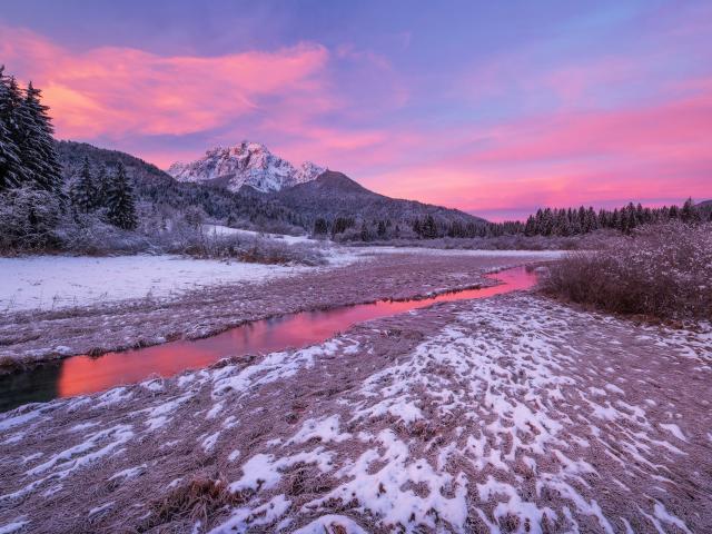 Wallpaper Covered with hoarfrost by the mountain stream in winter