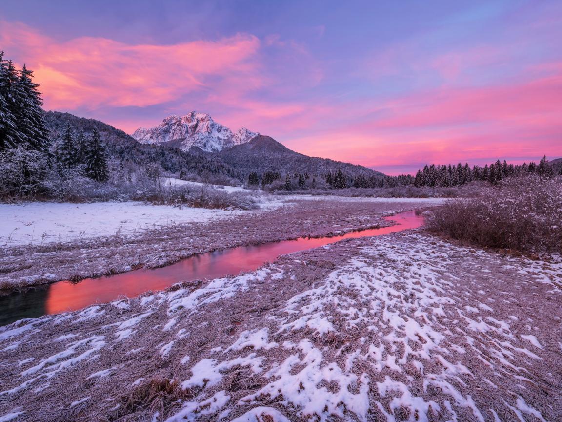 Wallpaper Covered with hoarfrost by the mountain stream in winter