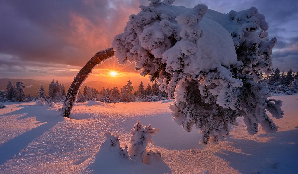Wallpaper Snow Covered Tree at Dawn of the Winter Sun