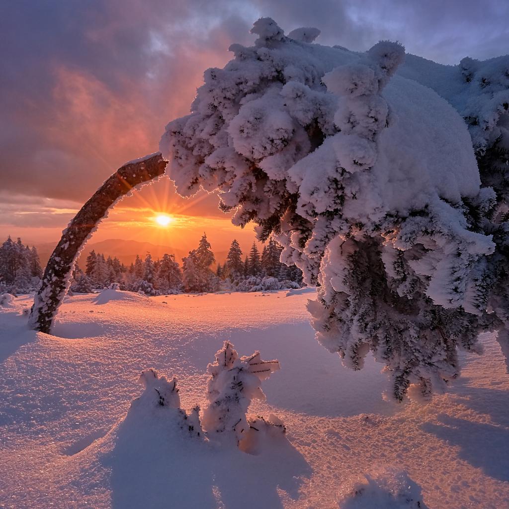Wallpaper Snow Covered Tree at Dawn of the Winter Sun