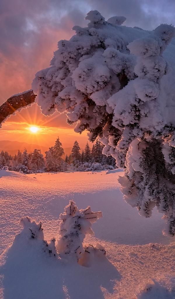 Wallpaper Snow Covered Tree at Dawn of the Winter Sun