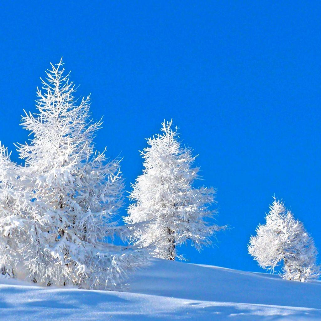 Wallpaper Frost-covered spruce on a blue background in winter