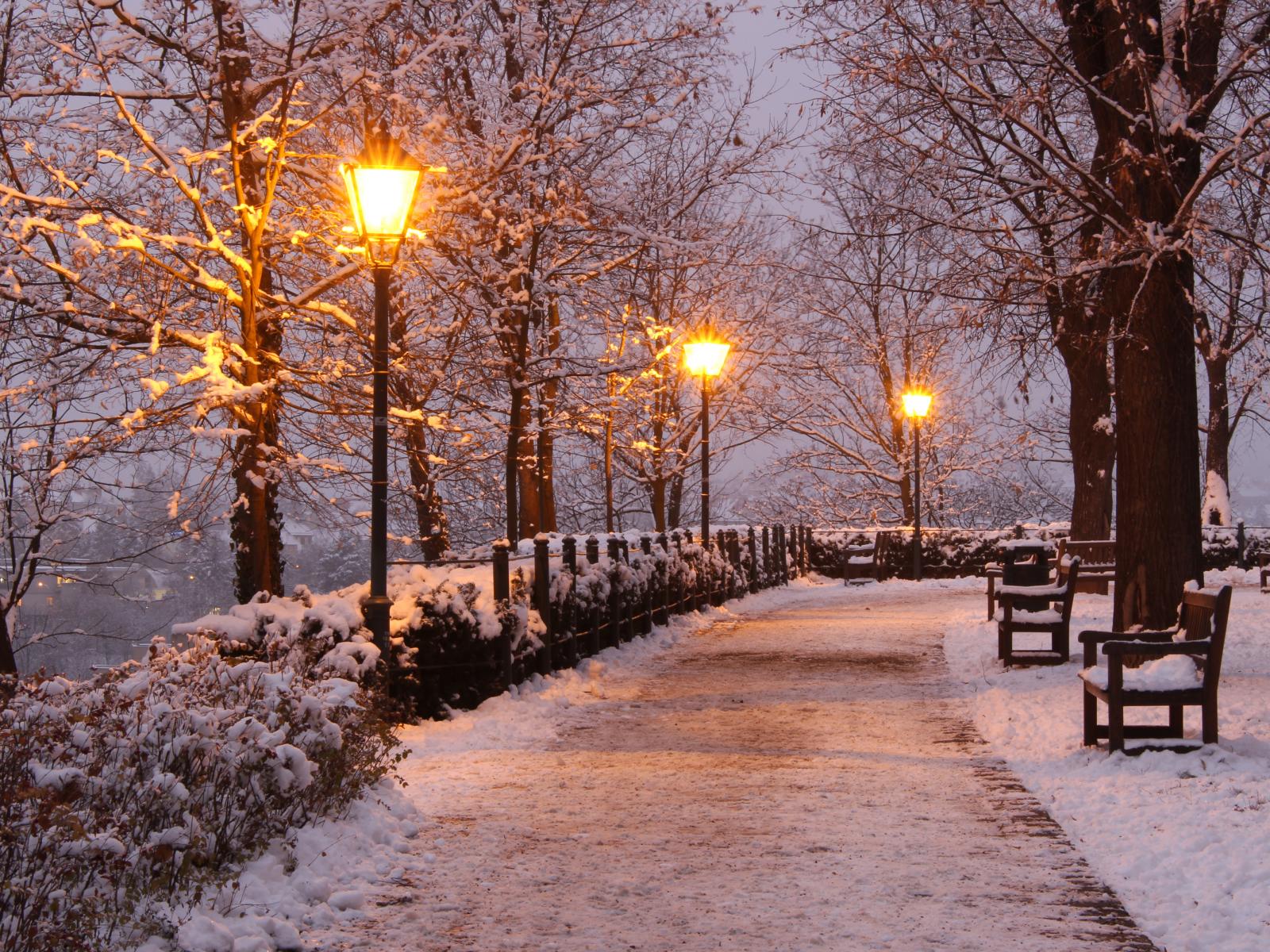 Wallpaper Snow-covered trees and bushes along the road in the winter park