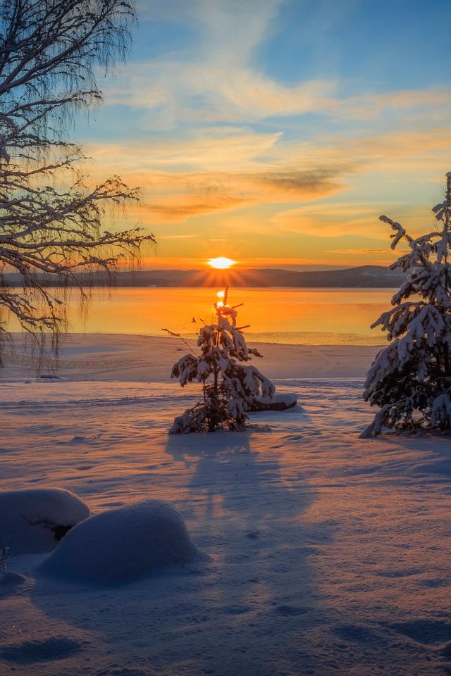 Wallpaper Beautiful snow covered trees in the morning sun in winter