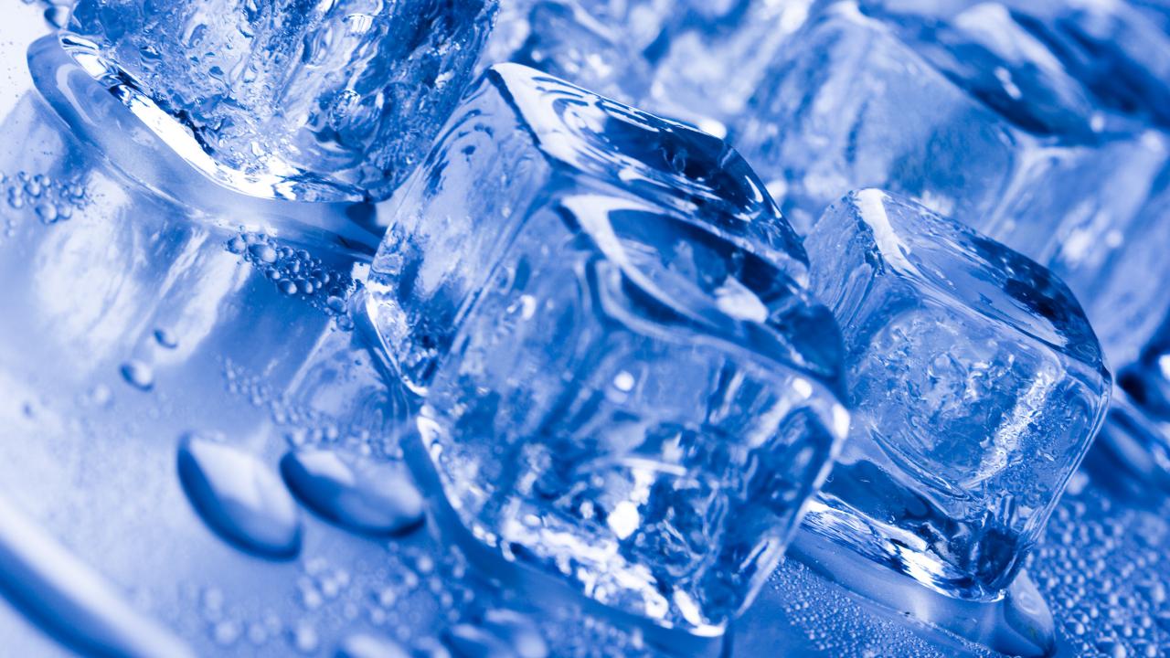 Wallpaper Chunks of blue ice on a wet surface