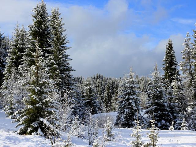 Wallpaper Green firs covered with snow in the winter forest