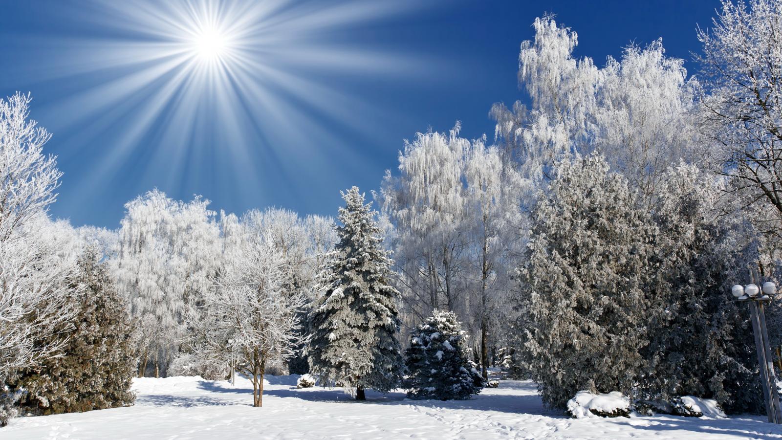Wallpaper Bright winter sun over the snowy forest