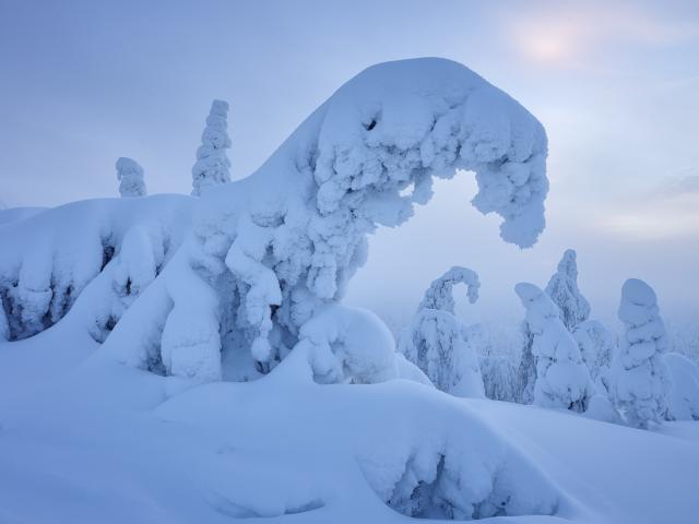 Wallpaper Winter sun illuminates the snow-covered branch in the forest