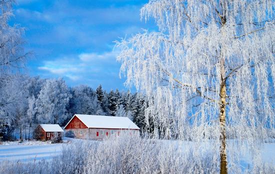 Wallpaper Beautiful white frost-covered trees against a blue sky in winter
