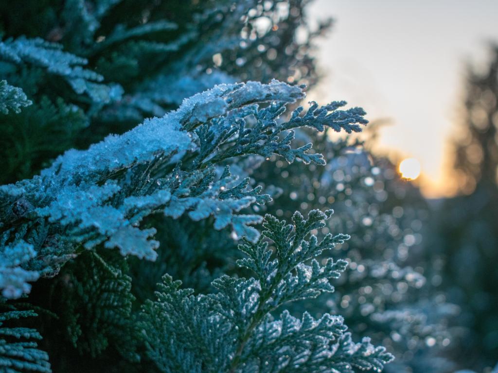 Wallpaper Green branch thuja covered with snow