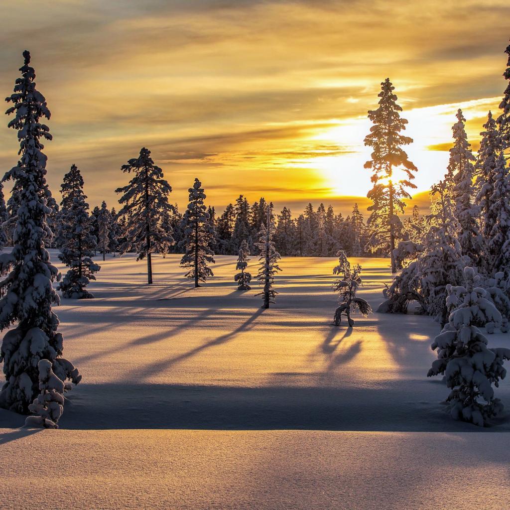 Wallpaper Snow-covered spruce in the forest at sunrise