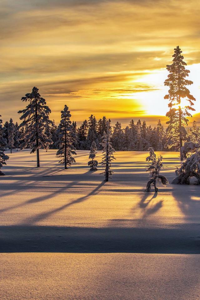 Wallpaper Snow-covered spruce in the forest at sunrise