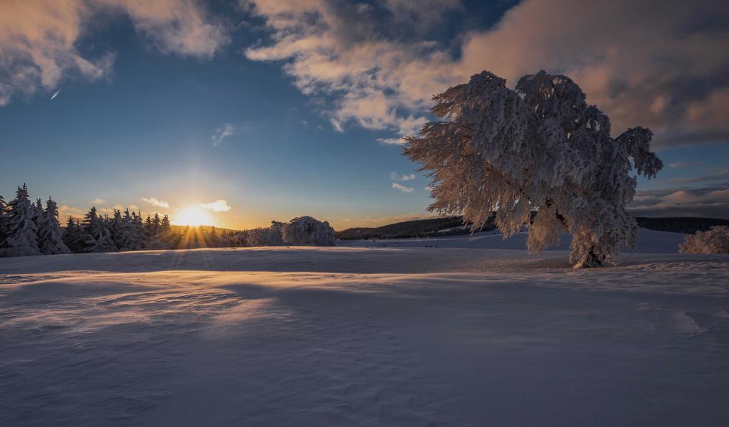 Wallpaper Snow Covered Tree at Dawn of the Winter Sun