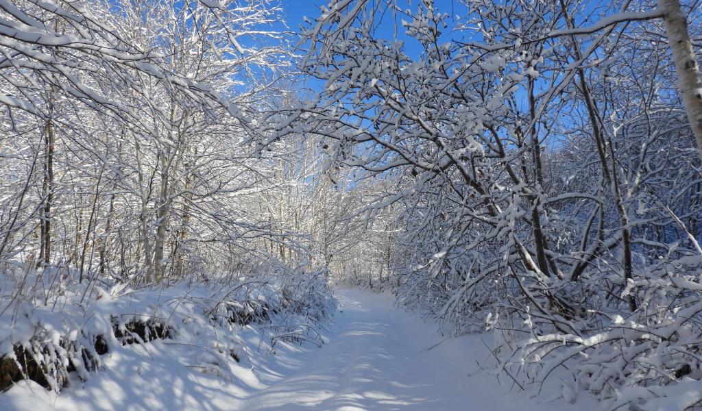 Wallpaper White trees by a snowy road in winter