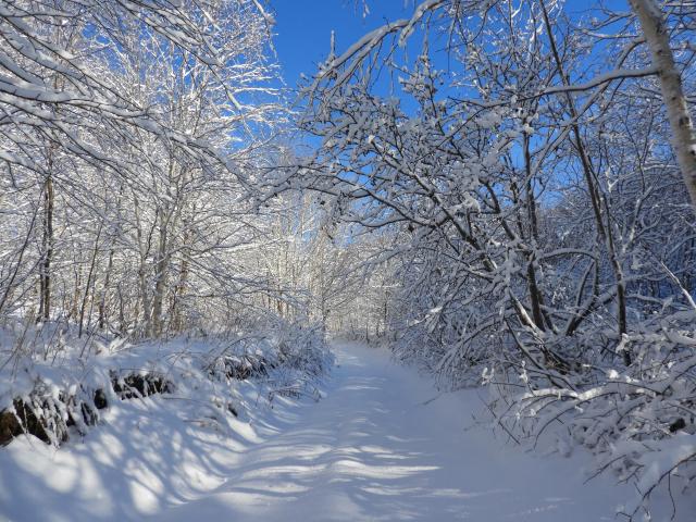 Wallpaper Snow covered trees in a snowy forest on a sunny day