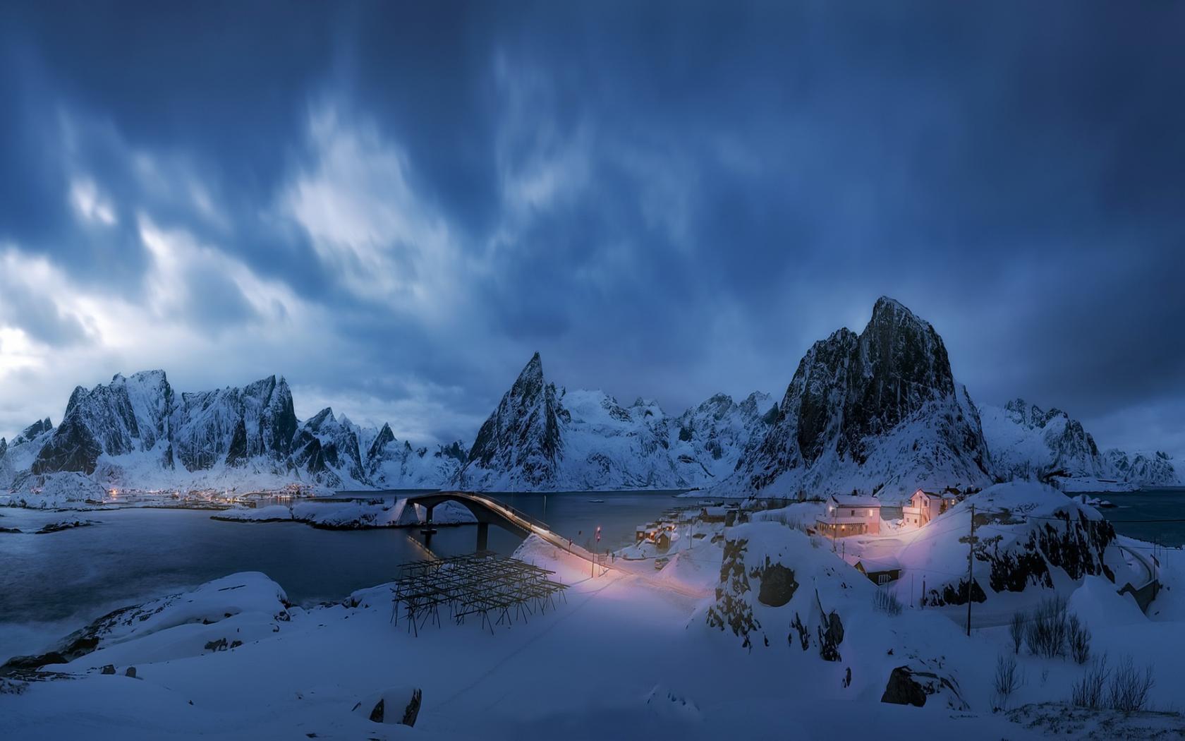 Wallpaper Cloudy sky over snow-capped mountains in winter