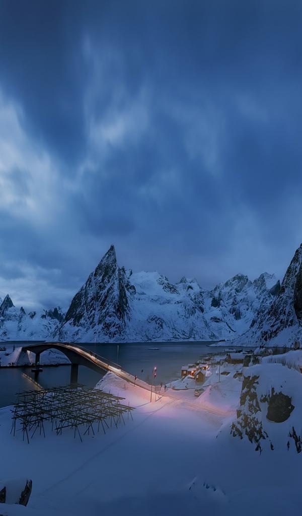 Wallpaper Cloudy sky over snow-capped mountains in winter