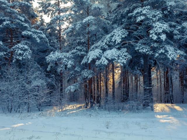 Wallpaper Snow covered trees in a snowy forest on a sunny day