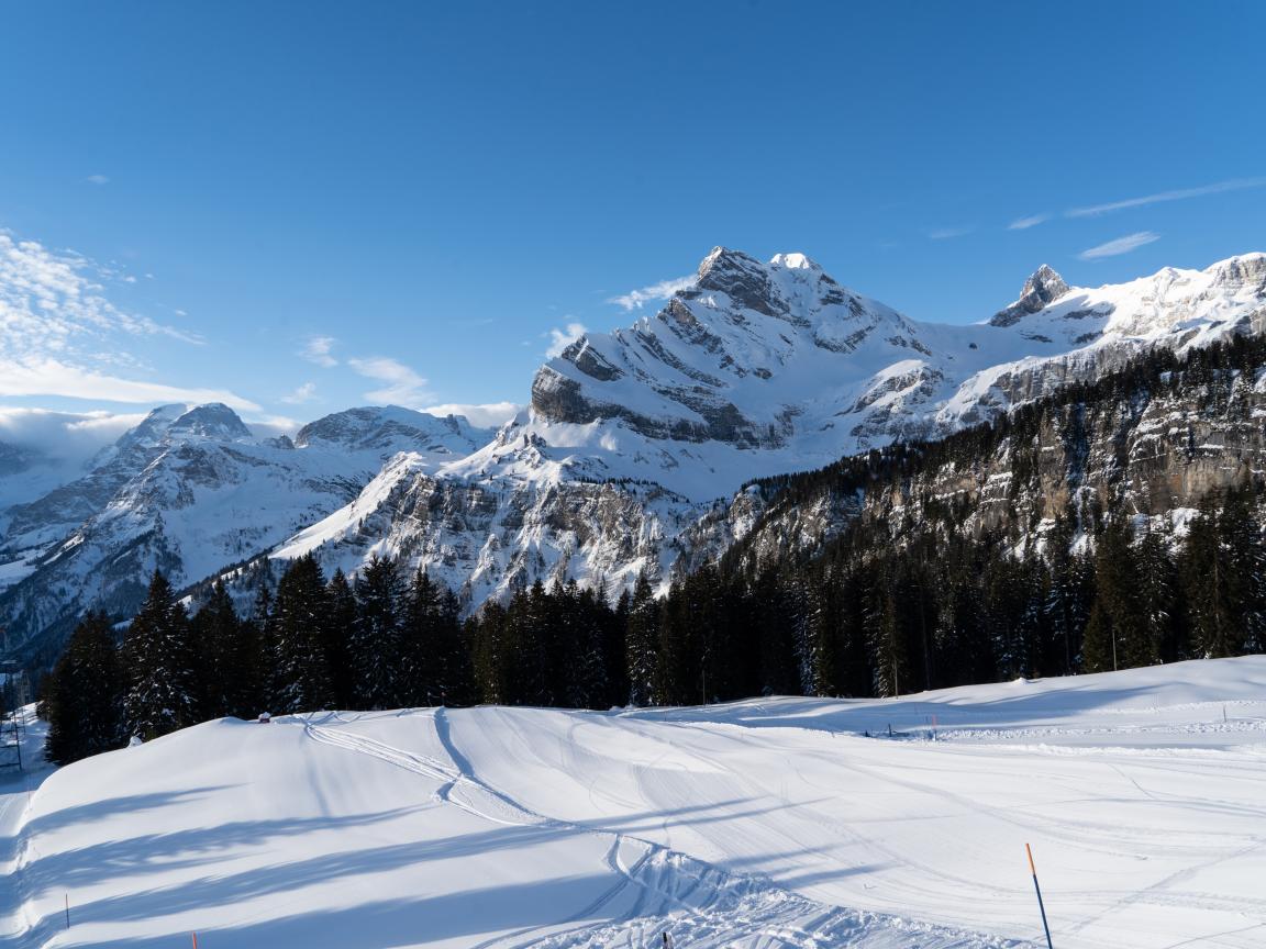 Wallpaper Beautiful snow-capped mountains under a blue sky in winter